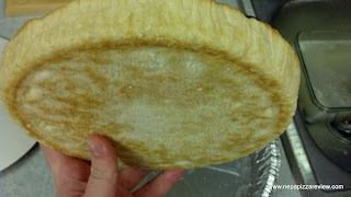 The cooking instructions were straightforward and simple.  The directions called for an oven to be preheated to 450 degrees, and for the pizza to cook on the middle rack for 40 to 45 minutes.  After moving the shelf to the middle of the oven, the only extra step is to remove the pizza from the pan, wipe off any condensation, and apply a little bit of oil to the pan before putting the pizza back in the pan.  After completing these tasks, I thought to myself this was the easiest pizza I’ve ever cooked!  After popping it in the oven, I could hardly stand the wait to try this pizza out an review it, but finally the time had arrived and I pulled the spectacular looking pie out of the oven.  To provide a shout-out to my buddy over at Frozen Pizza TV, I performed the “Photoshop Test” by comparing the catalogue’s photo to the finished product and I would have to say this thing passed with flying colors!