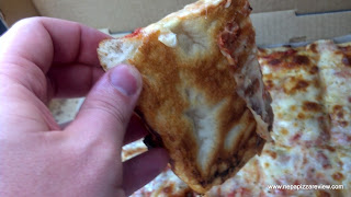 There was a generous portion of cheese on top of this pie, and it was quite flavorful. I’m assuming this was a cheddar cheese because of the flavors and the way that it cooked to a golden brown in several spots. There might have been a blend of cheeses, but my tastebuds were occupied with the crust, so you will have to grab one of these pies and try for yourself if you want to know what kind of cheeses are really on this pie. Finally, the sauce was pretty good. I found it to be a little muted because there was quite a bit of cheese, but I liked its balance and seasonings. I don’t think I detected any onions, and this was not a sweet sauce for you picky pizza eaters!