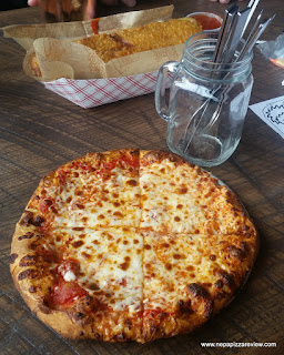 We showed up just before the lunch rush, so there was no wait to get a table although the place was busy. As I looked around, I thought the place was pretty cool with the memorabilia covering the walls, huge flat screen TV’s everywhere, and a really awesome square bar with a fire pit in the middle. We took a look at the menu to find that there was much more to this place than just sandwiches with fries and slaw on them. There were pizza, burgers, appetizers, and more. I also felt that the prices were very fair, I wouldn’t call them cheap, but certainly fair for the portion sizes I saw on every one’s plates. Of course, I was shooting for a pizza, but with also ordering a sandwich, I just ordered the personal 9″ cheese pizza for $6.99, which was a tad overpriced in my opinion. The 14″ at $11.99 was a little better value, and the 18″ was $13.99, which is about what a premium quality pizzeria in NEPA would charge for that size – in other words, slightly overpriced. If you couldn’t tell, I had an extraordinarily long time to review the menu – about 40 minutes until we went and requested service. But, the place is new, the servers weren’t fully trained or experienced and everyone is learning, so I guess it was an honest mistake, and the manager made it up to us by offering an appetizer or two on the house. Once we got our order in, the rest of the service was good.