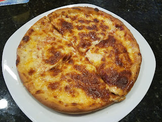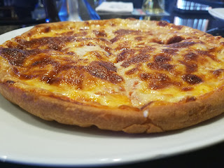 I always appreciate how clean the place is every time.  It’s such a friendly, casual, and relaxing atmosphere that draws friendly people that all seem to know one another.  The service has been speedy and courteous each time I’ve visited and the food is remarkably good and consistent.  I’ve sampled the wings and a few appetizers there which were very good, but today it was time to try the pizza.  HV sells personal pizzas which is made with fresh, hand tossed dough and topped with their special blend of cheeses.  I ordered up a cheese pizza, affectionately known as “Old Faithful” on the menu and it wasn’t long before the pizza was right in front of me.