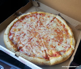 I called ahead for my order, and since I wasn’t familiar with the pizzeria I asked the gentleman on the phone what they sell the most of, and instead of giving me a quick response like some restaurants do, he took the time to explain the entire pizza menu and what some of the more popular items were. This was much appreciated, and you always get brownie points in my book for providing great service, and this was an excellent example of just that. After hearing about all of the tasty gourmet offerings, it felt like a bit of a let-down to order my traditional plain cheese pizza for review. Nevertheless, I placed the order, gave my name, and the pizza maker said “give me fourteen and a half minutes.” I laughed, but if he was issuing a time challenge, I was putting him up to this test as well so I set the timer on my cell phone and took to the pizza mobile quickly. I was 15 minutes away according to my GPS, so I had to make up a little time – of course stopping at every stop sign and abiding by every posted speed limit! I kept my eye on the clock as I raced to get through Scranton, and unfortunately this was one time that my GPS was right on the money, I got there in 15 minutes and a few seconds to spare. I jumped out of the pizza mobile and rushed in, only to see that my pizza was steaming hot on top of the oven. The pizza guy had won the “fourteen and a half minute challenge” and I respect that.