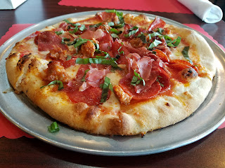 Last time I ate at A Little Pizza Heaven, I ordered a plain pizza to go and rushed in and rushed out. The place always struck me as a place that I wanted to dine in and stay a while as well as take the First Lady of NEPA Pizza on a date to get a nice Italian dinner and some pizza. This time, I decided to eat in and order something other than a plain pizza. I’ve seen so many mouth-watering pizzas on the ‘lil pizza heaven instagram that I had to enlist the owner’s help in what to order. He recommended the Italian Stallion pizza which is essentially a very high-end meat-lover’s pizza! The menu describes it as “fresh dough with a crushed tomato sauce, topped with pepperoni, sausage, prosciutto, soppressata, and fresh mozzarella.” It didn’t require much convincing for me to order this carnivore’s delight pizza!