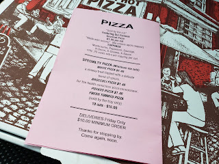I called in my order on a Friday before the busy rush and was assigned a pick-up time which was approximately 35 minutes from when I called. This wasn’t too bad at all because some of the pan fried Sicilian pizzas in the area can assign you pick-up times several hours after you order. These places are popular and get super busy and the oven capacity can only crank out so many pizzas per hour so plan ahead if you want to order from Ceccoli’s or similar establishments. I know I had similar time frame experiences at Shandra’s and Elio G’s. You order your pizza by the cut (not the slice), not by the tray so customize the order any way you like and multiply it by $1.35 per cut. The other thing you might want to know in planning your trip to Ceccoli’s is that it’s cash only which fits it’s throwback image. After entering the restaurant, I immediately got a welcoming vibe from everyone there and quickly found out that this was a family affair where everybody was pitching in. To me, it was the quintessential small business that you want to support!