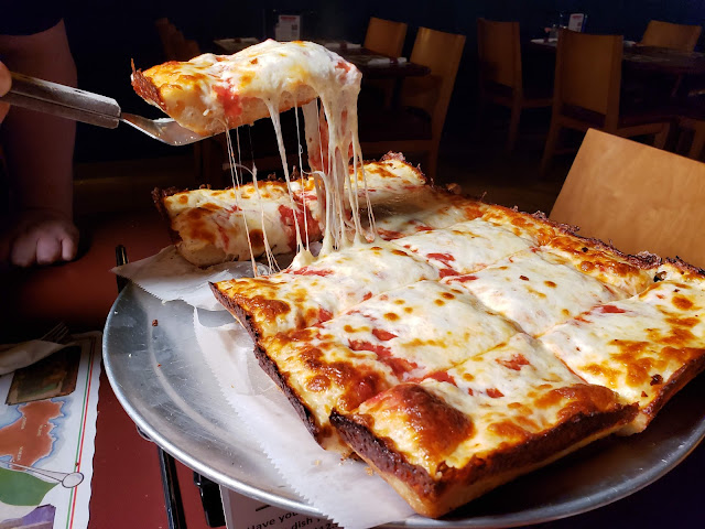 If you’ve lived anywhere near NEPA or the Pizza Capital of the World Old Forge, Pennsylvania you know that the Arcaro name is synonymous with Old Forge pizza royalty and this name helped put the rectangular “trays” of pizza on the map. Arcaro’s the Next Generation stems from that family tree and has opened a fairly new shop in downtown Pittston on Main Street across from Rite Aid. The restaurant sits back slightly in a row of buildings, so as I approached the building I began to expect a small pizzeria, maybe a takeout joint with a few tables, but boy was I wrong! After entering, I was shocked at how large and spacious the dining room was given the size of the store front. It was very spacious with comfortable booths and tables providing a relaxing and casual atmosphere to dine.