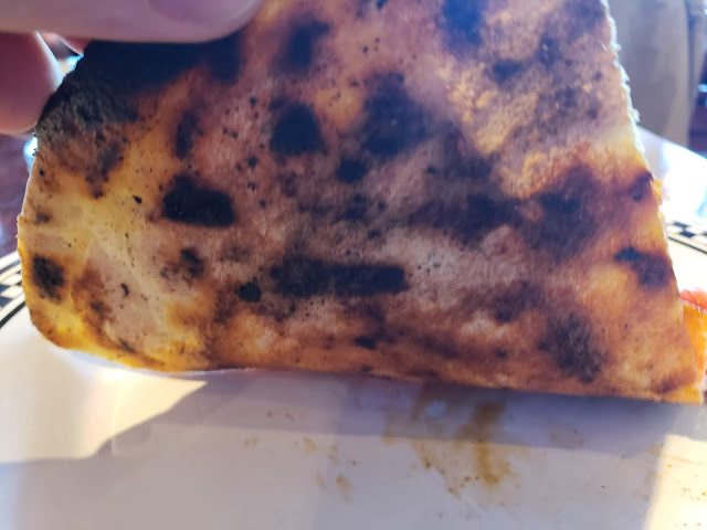 | A look at the nicely cooked underside of the pizza with light charring in some areas which added some pleasant flavor. |