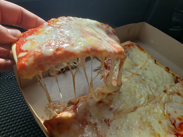| Roseanna’s Pizza is very generous in the amount of cheese they apply! |