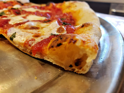 | The high direct heat allows for rapid expansion of air pockets in the dough. Check out the pretty bubble on this pizza! |