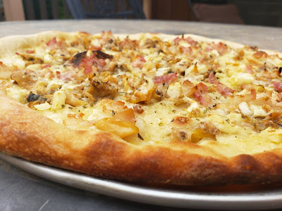 | Hot Wing Old Forge Pizza Cooked in the Camp Chef Italia Pizza Oven. |