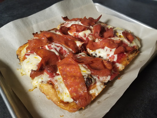 | Pan Fried Sicilian with Sliced Pepperoni at Cosmo’s on Oak. |