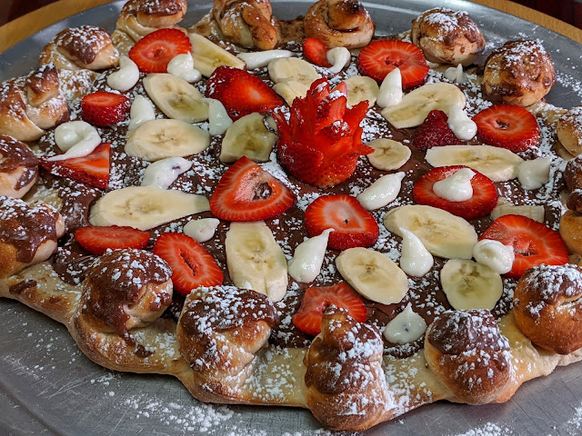 | Desert Pizza Featuring Brown Sugar and Cinnamon Knot Crust, Nutella, Bananas, Strawberries, and cannoli cream at Franco’s in Wilkes-Barre. |
