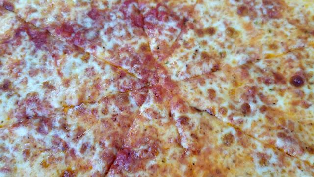 Beautiful colors of the cheese and sauce on the NY style pizza at Drafts.